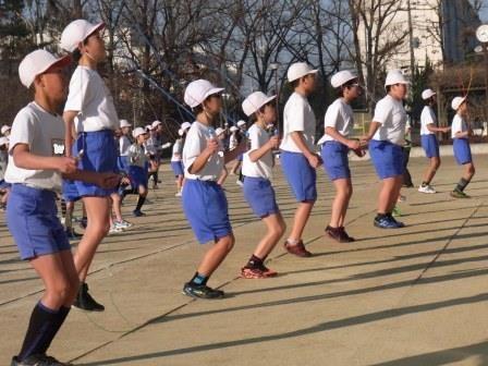 武里南小の子どもたちは、いろいろな場面で、体力を向上させています。朝マラソンで切磋琢磨