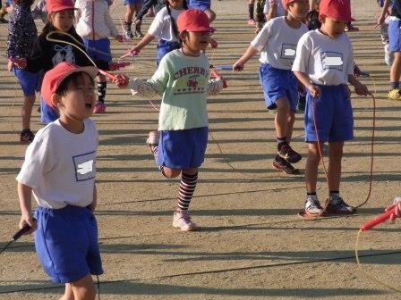 軽快な音楽に合わせて、いろいろな跳び方に挑戦です。