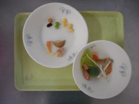 大豆・いんげん豆」です。豆類だけのソテーなので食べにくい