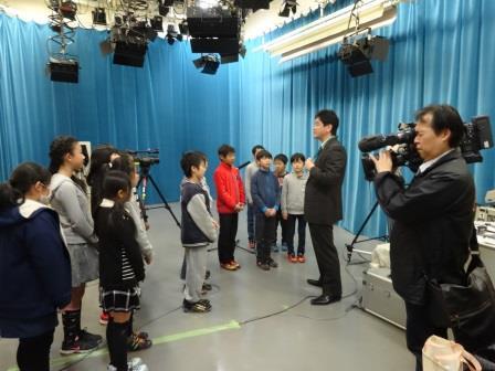 調整室とスタジオはマイクでやり取りすることや、キャスターはテロップを読むことなど、初めての体験がいっぱいで、とても貴重な学習の機会となりました。