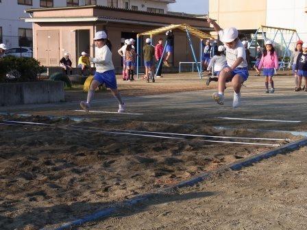 1年生は縄跳び、2年生は幅跳び、3年生は8秒間走、4年生はハードル走、5年生は器械運動、6年生は投てき運動などを行いました。