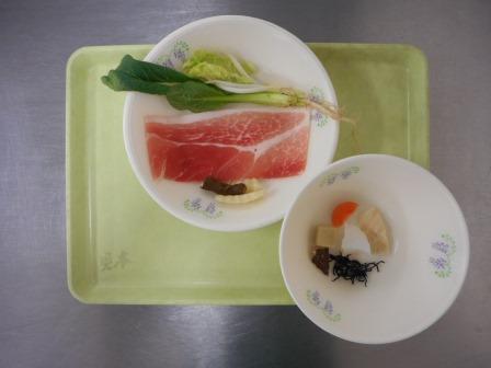 ・豚肉のごまだれかけ・小松菜のおひたし・けん