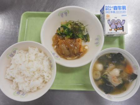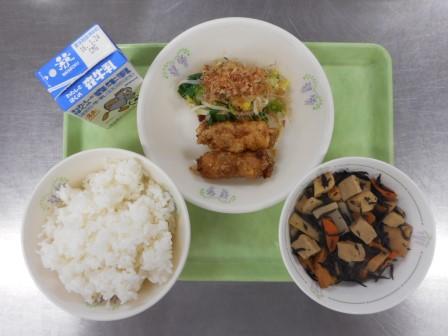 今日の給食のメニューは「ごはん・牛乳・いかの
