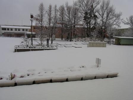 今朝も、校庭のどんぐり山(自然観察園)に積もった