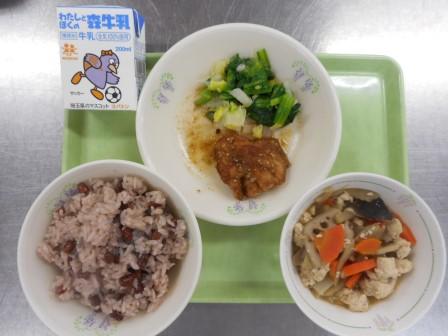 今日の給食のメニューは「ごはん・牛乳・肉巻き