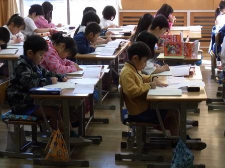3年生は、「てまり」を書いています。「ま」の文字がポイントです。