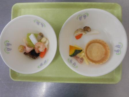 牛乳・根菜サラダ・かぼちゃのタルト」です。