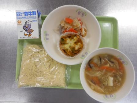 今日の給食のメニューは「中華麺、チャンポン麺の汁・