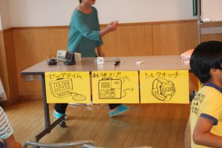 音が聞こえないために、日常生活の中で使う身のまわりのものに、いろいろな工夫がされている様子を、実物で見せてていただきました。