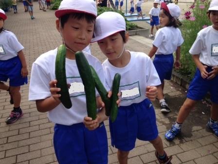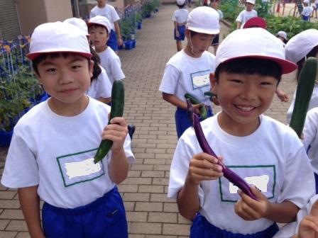 今朝、2年生の子どもたちが、育てた野菜がとれました、と見せてくれました。