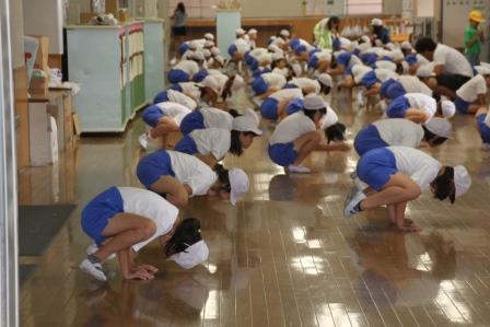 武里南小の子どもたちは、毎日しなやかな体づくりに取り組んでいます。PTAあいさつ運動