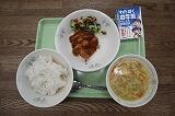 今日の献立は、『ごはん・牛乳・あじのヤンニョムカンジャン揚げ・なる無・中華スープ』です。