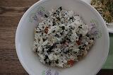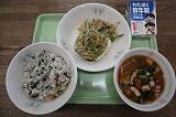 わかめごはんは、ニンジンと油揚げも入っていて、おいしくいただきました。豚汁も野菜に味がしみ込んで、ホカホカでした。いつもおいしい給食ありがとうございます。