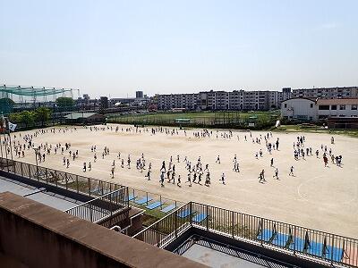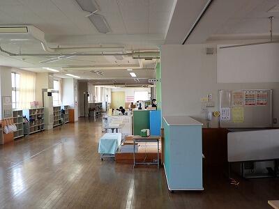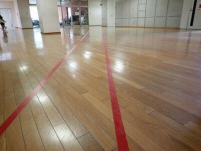 体力テスト反復横跳びの練習用と思いきや、子供たちのトイレ動線。