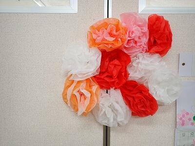 南学級の廊下側には、子供たちがつくったきれいなお花が掲示されています。