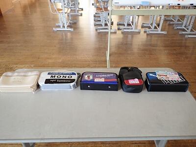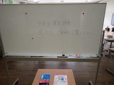 4年生の廊下には、漢字辞典の見本、5年生の廊下には、裁縫セットの見本が置かれています。