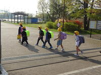 昨日、入学式を終え、初めて登校班で学校に来ました。