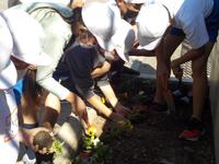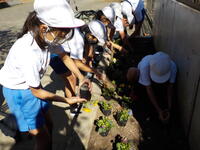 正門の花壇に栽培委員の5,6年生が花を植えてくれました。