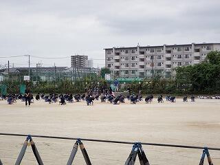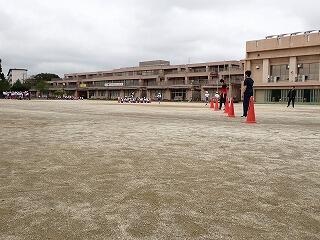 6校時は、5・6年生が校庭で合同練習に臨みます。