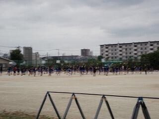 業間休み時間となりました。幸い小雨も上がり、武南シャイニングDayの種目である50m記録走の練習です。