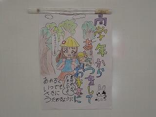 教室の廊下の掲示を見ると「高学年からあいさつをしてお手本に」のポスターが貼られていました。