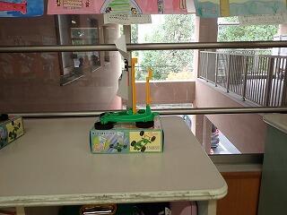 実験をとおし、風やゴムで物が動く様子を調べたり、ゴムの働きについての考えます。