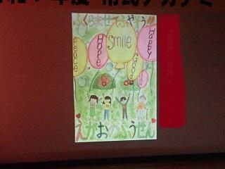本校からも、児童の人権ポスター作品が会場に掲示されるとともに、大きなスクリーンでも紹介されました。