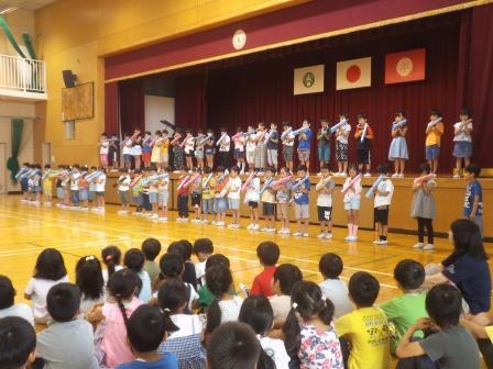 今朝の音楽朝会は2年生の発表です。さすが、この1年で大きく成長しました。この日は公民館の「ふれあい喫茶」にも出演しました。