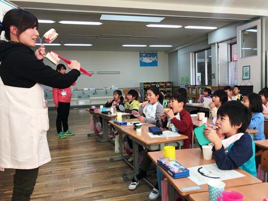 1年生・歯磨き指導 投稿日時 : 2017/12/13 武里南小 カテゴリ: 歯について学びますカラーテスターを歯につけます赤く着色した歯を記録します赤くなった歯を重点的に磨きます 1年生の教室で、保健の「歯みがき指導」が行われていました。給食後の昼休みにも歯を磨いていますが、カラーテスターで調べてみると磨き残しに部分がよくわかります。養護教諭に歯に大切さや磨き方をていねいに教えてもらいました。一生付き合う歯ですから、大切に磨いてください。