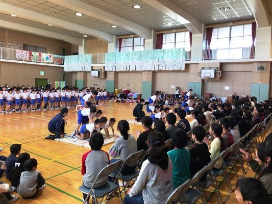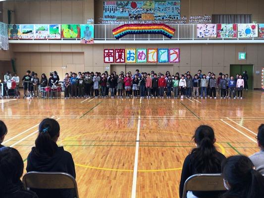 今日は、6年生を送る会が行われました。1年生から5年生は、学年ごとに工夫をこらしながら、6年生を送る言葉と出し物を披露しました。とても、気持ちのこもった素晴らしいプレゼントでした。お返しに、6年生からは、よびかけと歌のプレゼントをしました。感動と心温まる「6年生を送る会」になりました。
