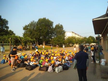 朝6時半集合、5年生は2泊3日の林間学校へ出発しました。