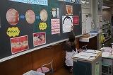1年生に歯みがき指導を行いました。歯の王様と言われる奥歯について、虫歯になった写真を見ながら、大切さを学習しました。子供達は写真を見て、「うわぁ、怖い」、「痛そう」と言っていました。