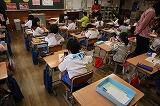その後、カラーテストで歯を染めて、自分の歯の汚れを確認しました。そして、養護教諭からそれぞれの歯にあった歯みがきの仕方を学び、一緒に歯みがきをして汚れを落としました。今日の学習で、正しい歯みがきをしてくれるでしょう。