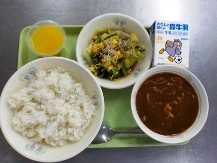 ・牛乳・キャベツとじゃこのサラダ・オレンジゼリー」です。
