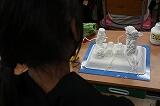 6年生の図工「白の世界」では、紙粘土や液体粘土を使って、真っ白い世界を表現しています。個性的な作品が多く、出来上がりが楽しみです。