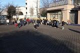正門前で大きな声であいさつ運動に取り組む1年生に、登校する子供達は嬉しそうに挨拶を返します。