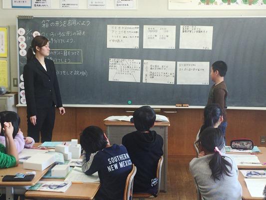 4年生・算数科研究授業 投稿日時 : 2017/02/16 武里南小 カテゴリ: 立方体と直方体の箱の形を調べて分類します班の中で意見を出し合ってまとめたことを発表します 今日は、4年生の算数の研究授業がありました。春日部市教育委員会から、角田先生をお招きして、ご指導をいただきました。子どもたちは、自分の考えを発表しながら、友だちにも伝えることができました。