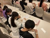 夜の体験活動として、寄せ木細工体験を行いました。講師の方に寄せ木細工の歴史や仕組み、実物を見せていただき、体験しました。一人一人、形やデザインの違う、世界に一つだけのオリジナル寄せ木細工ができました!