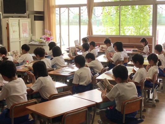今朝は、5年生、6年生のお話会がありました。気候も涼しく過ごしやすくなってきました。読書には最適な季節です。昼休みに、図書室でまだ見ぬ本を探してみてはどうでしょうか。