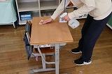 下校後の教室では、明日の登校日第二日目に向けて、職員が感染症拡大防止のため机などをアルコール消毒しました。できることを精一杯しながら、子供達の安心・安全を考えて教育活動を実践しています。