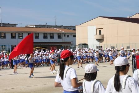 運動会全体練習 投稿日時 : 2015/09/15 武里南小 カテゴリ: 今日は、運動会全体練習です。入場行進の練習をしました。1年生は初めて、お兄さんお姉さんたちと息を合わせた行進をがんばりました。広い校庭で、縦と横をそろえ、手と足を大きく動かして行進します。最後に、ラジオ体操を全員で合わせました。