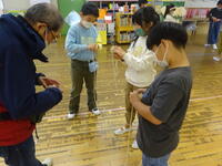 3年生の総合的な学習の時間では、昔の道具や生活について学習しています。今日は、地域の自治会の方をゲストティーチャーとしてお招きし、木ゴマやベーゴマの仕方を教わりました。短い時間でベーゴマを回すことは難しかったですが、木ゴマは回せるようになった人がいます。ベーゴマとベーゴマの台をお借りしているので、いっぱい練習して上手に回せるように頑張ります。