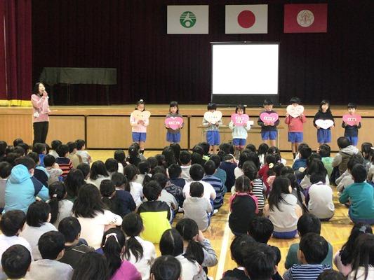 全校朝会 投稿日時 : 2018/03/07 武里南小 カテゴリ: 認知症理解のDVDを視聴しました3月の生活目標の発表 今日は、全校朝会でした。初めに、校長先生より、本校の6年生も参加した「認知症理解のDVD」を視聴しました。私たちの身近な問題として、考えて行動していきたいですね。次に、生徒指導担当から、今月の生活目標の発表がありました。1年生の有志も参加しての発表でした。3月の生活目標は、『1年をふりかえり感謝しよう!』です。これまでお世話になった人やものに感謝しましょう。