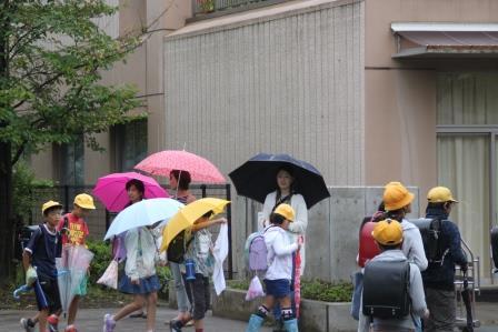 武里南小の子どもたちの傘の波に、さわやかなあいさつをかけてくださり、ありがとうございます。