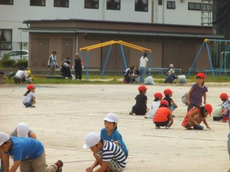 1・2年生は石拾い、3~6年生と保護者の皆さんは草取りです。