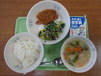 6月2日(水)の給食 投稿日時 : 2021/06/02 武里南小学校管理者 カテゴリ: 「豚肉のりんごソースかけ、かみかみサラダ、野菜スープ」 りんごソースがとてもまろやかで美味しく、ごはんがすすみます。 かみかみサラダは噛みごたえがありました。