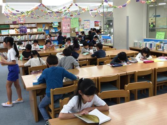 外は雨で、図書室は大盛況でした