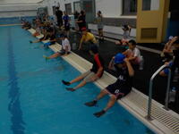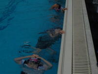 万が一の事故に備え、各学年で着衣水泳を行いました。(天候などの影響でできない学年もありました)水着で泳ぐのと服を着たまま泳ぐのでは体感する重さが違い、水泳が得意な子もなかなか自由に動き回れませんでした。高学年では、ペットボトルやビニール袋を使った浮かび方など、いざというときに命を守るための行動を学びました。