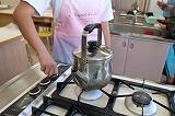 まずは、やかんを使ったことのない子供も多く、こんろで湯を沸かすことも初めての子もいました。いまは、電気ポットが主流ですね。