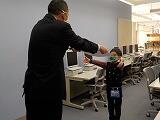 初めてのことなので、なかなか羽が羽子板に当たらず、羽根つきが続かない状態でした。最高記録は2回。難しかったようです。それでも楽しそうに活動できた1年生でした。